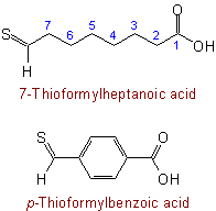 همچنین ترکیباتی که در آن -CHS گروه اصلی نیست، از پیشوند “تیوفرمیل-” استفاده میشود.